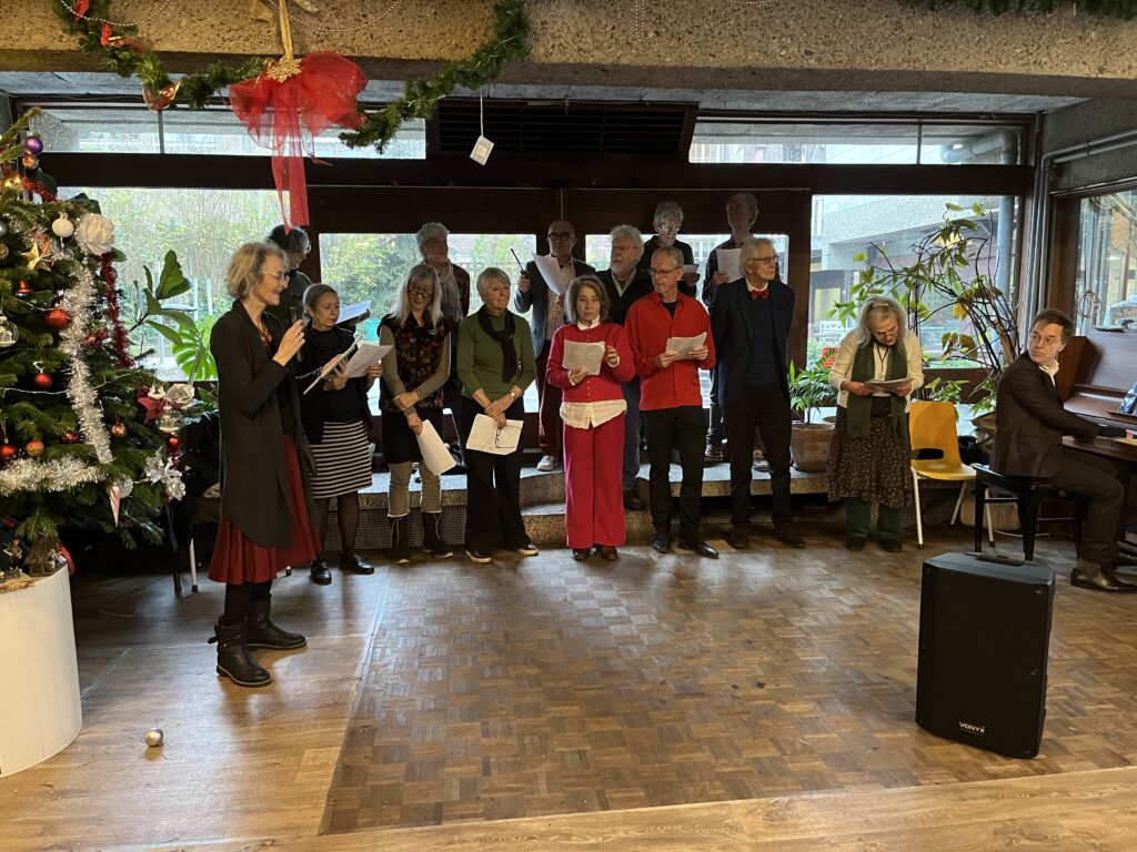 Ook dit jaar zong het Pauzekoor weer Spaanstalige kerstliederen tijdens de Kerstmarkt van het ontmoetingscentrum voor Spaanstaligen Casa Migrante. Dit keer met meer Zuidamerikaans repertoire, o.a. een oud Ave Maria uit Peru, maar ook een vrolijk lied over iemand die met een ezeltje naar Bethlehem gaat.